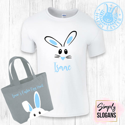 Personalised 'Easter Egg Hunt' T-Shirt and Bag Bundle (Blue)