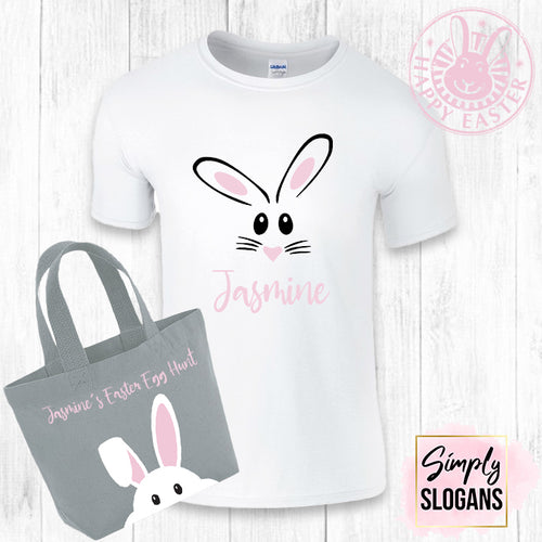 Personalised 'Easter Egg Hunt' T-Shirt and Bag Bundle (Pink)